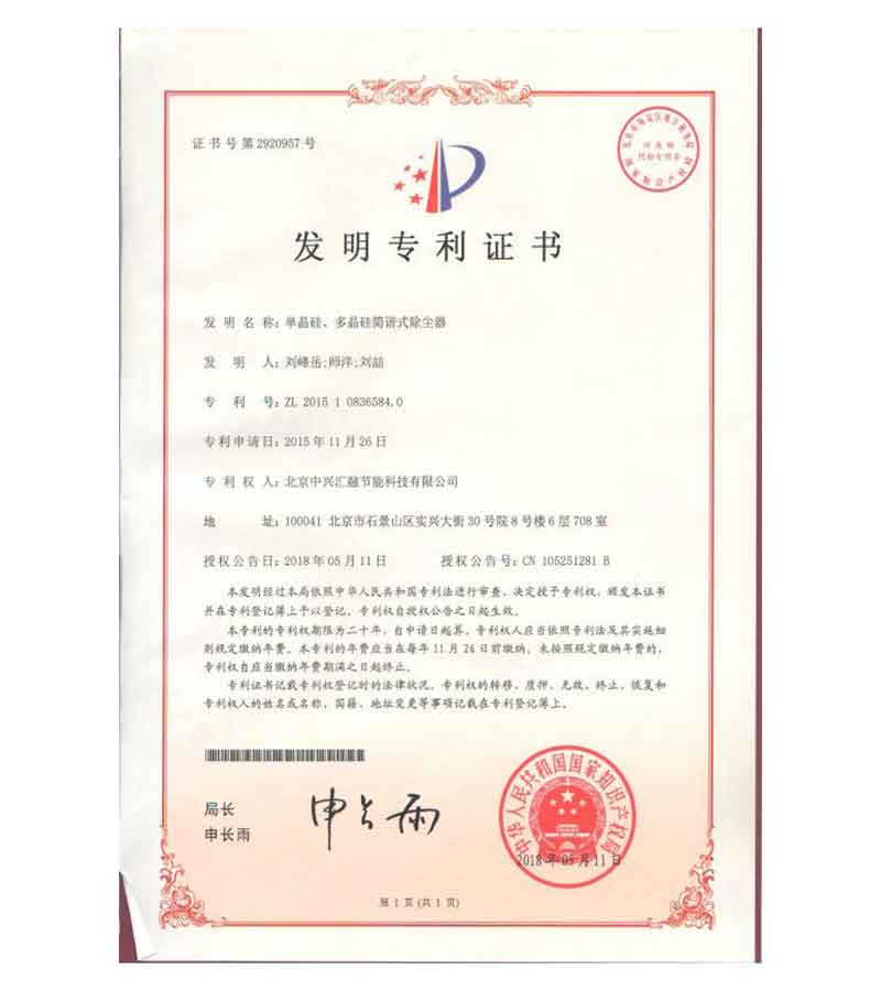 “中興匯融”多年專(zhuān)注于環(huán)保除塵技術(shù)及設(shè)備的研發(fā)和生產(chǎn),同時(shí)為跨行業(yè)、跨領(lǐng)域的合作伙伴提供環(huán)保除塵技術(shù)咨詢(xún)、技術(shù)服務(wù)。公司基于數(shù)十年積累的環(huán)保、除塵專(zhuān)業(yè)領(lǐng)域的豐富實(shí)踐經(jīng)驗(yàn),結(jié)合客戶(hù)在生產(chǎn)應(yīng)用實(shí)踐中的需求、痛點(diǎn)、難點(diǎn),研發(fā)成功了簡(jiǎn)諧式除塵器,并取得了一項(xiàng)國(guó)家發(fā)明專(zhuān)利及數(shù)十項(xiàng)實(shí)用新型專(zhuān)利。這些專(zhuān)利產(chǎn)品主要應(yīng)用在單晶硅、多晶硅及半導(dǎo)體生產(chǎn)企業(yè),解決了客戶(hù)在生產(chǎn)過(guò)程中的瓶頸,助力客戶(hù)產(chǎn)能得到了數(shù)倍的提升。